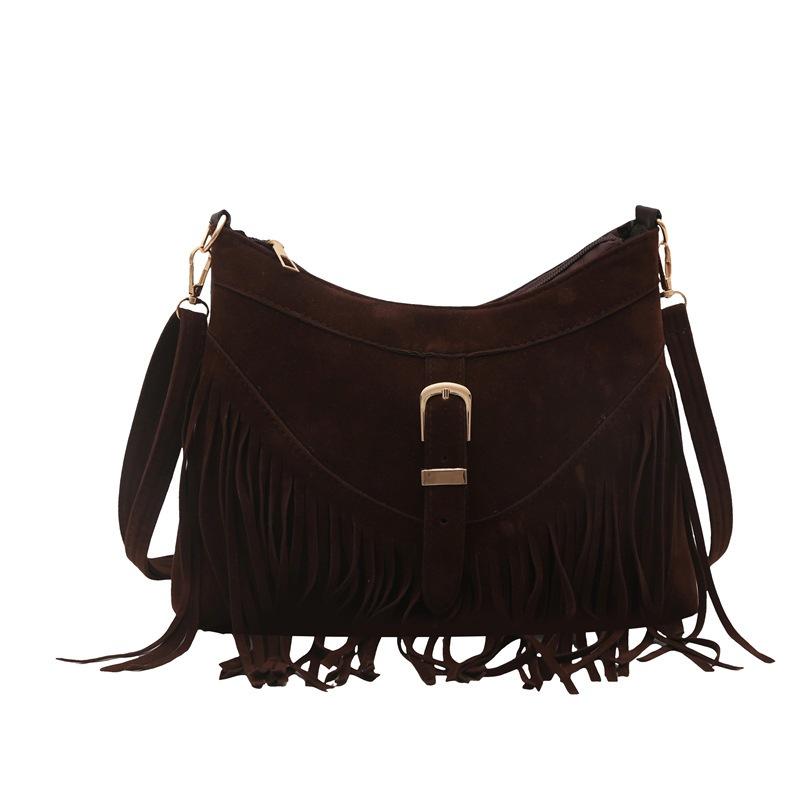 Нишевый ретро мотоцикл для поездок на работу, сумка через плечо из матовой кожи с бахромой и пряжкой для поездок на работу кофейный