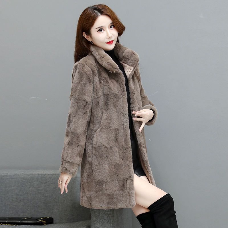 Новая Зимняя Наложница Норка Свободная Мода Мех Длинный Рукав Средней Длины Внешняя Легкая Роскошь Модная Женская Одежда Черный 4XL recommends 140-80kg темно-коричневого