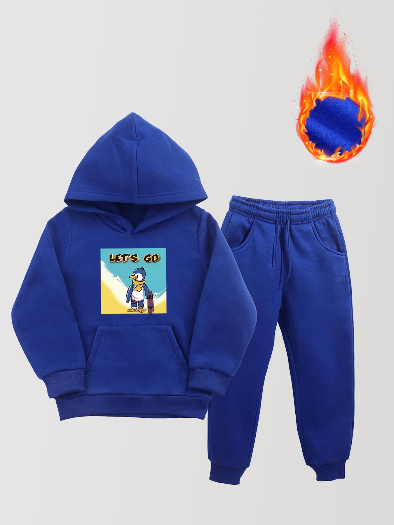 Новая Мода Мальчики Толстовка Пуловер с Капюшоном и Спортивные Штаны Набор из 2 предметов Мультяшный Принт Единорога Повседневные Флисовые Утепленные Теплые Спортивные Костюмы Для Осени/ Зимы 160 синий