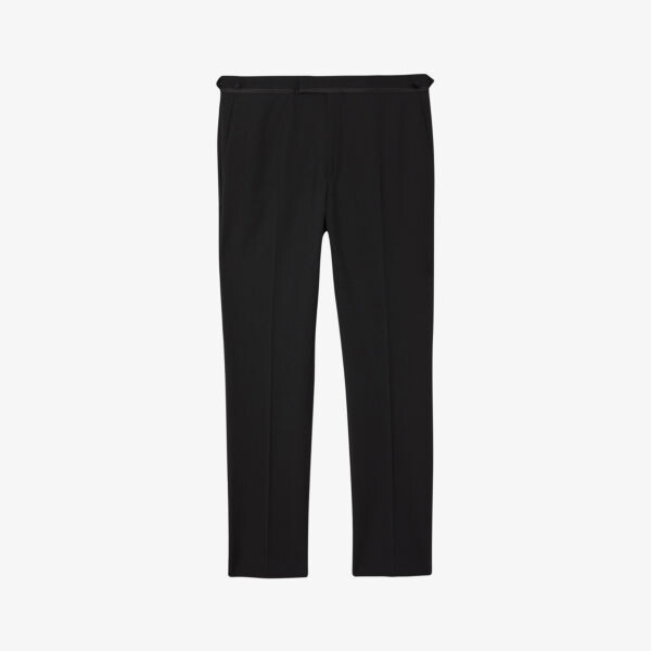 Брюки-смокинги Poker узкого кроя из смесовой шерсти стрейч с атласной отделкой Reiss, черный