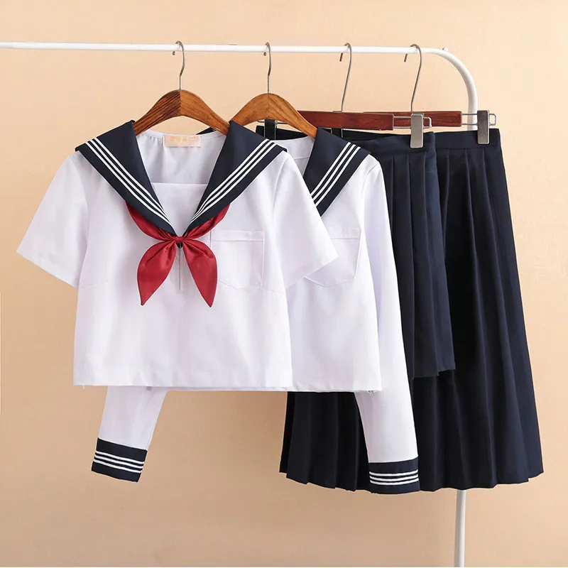 Новая Осенняя школьная униформа для девочек, милая Женская Косплей, Матросская Униформа JK, белая рубашка, серая плиссированная юбка, компле...