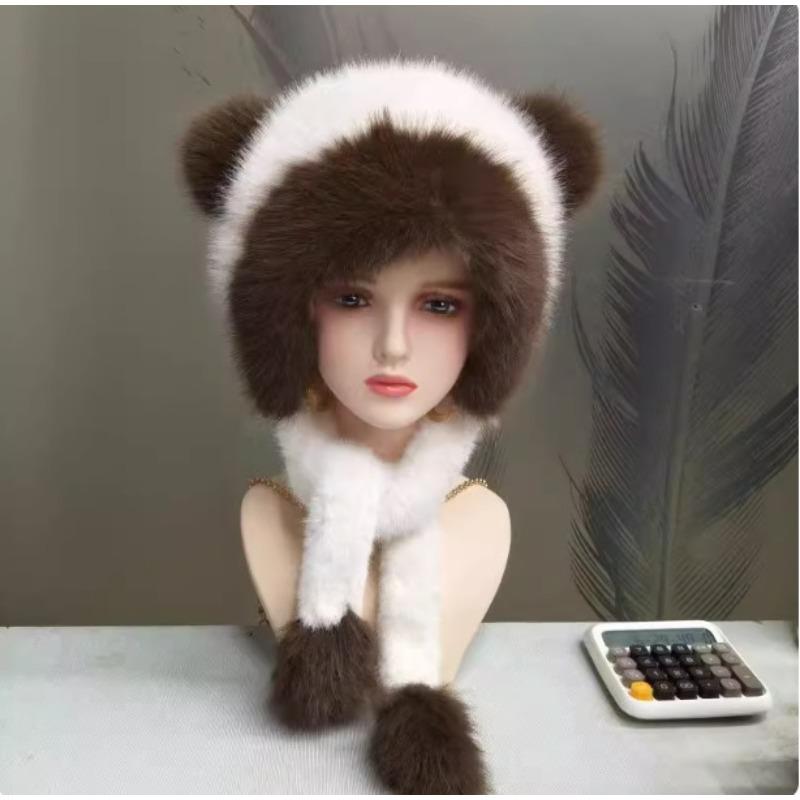 Новая Утолщенная и Теплая Милая Плюшевая Шапка с Ушками Медвежонка Плюс Бархатная Защита Ушей Сладкая Шапка-Носок Плюшевая Ветрозащитная Шапка One size