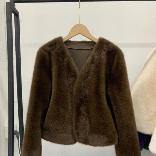 Новая американская повседневная верхняя одежда с v-образным вырезом, осенне-зимняя женская шуба из искусственного норкового меха, свободная теплая короткая европейская мода, сплошной цвет