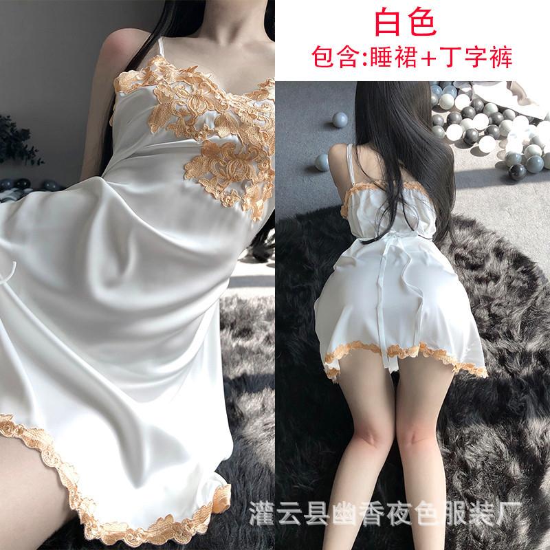 Новая атласная вышитая юбка соблазнительная глубокий V сексуальная ночная рубашка с подвязками домашняя одежда One Size белый