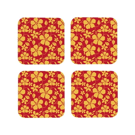 Drink Coasters Set of 4 Hawaiian Style Red Yellow Leather Coasters for Coffee Table Protector Heat Resistant Cute Coasters for Home Decor Housewarming Gifts Bar Kitchen 4 Inch Square