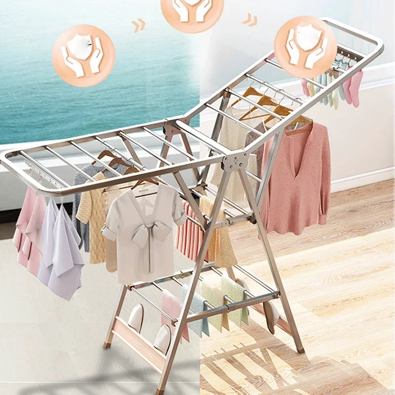 Новая большая вешалка для одежды из нержавеющей стали, напольная складная вешалка для одежды для спальни, балкона, домашняя вешалка для детской одежды, сушилка одеяла