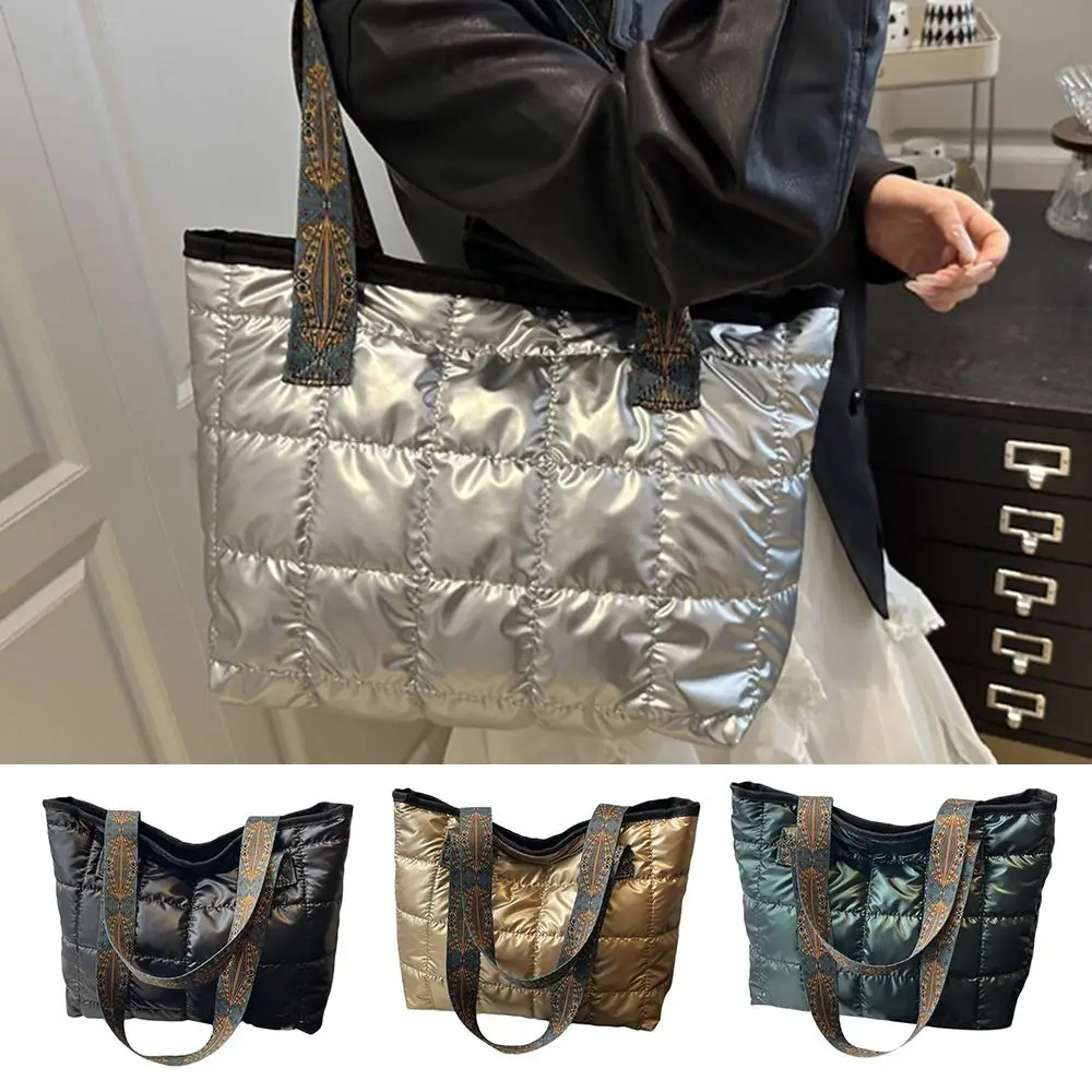 Новая большая вместительная сумка на плечо, космическая хлопковая сумка для подмышек, легкая женская сумка, повседневная клетчатая пышная сумка
