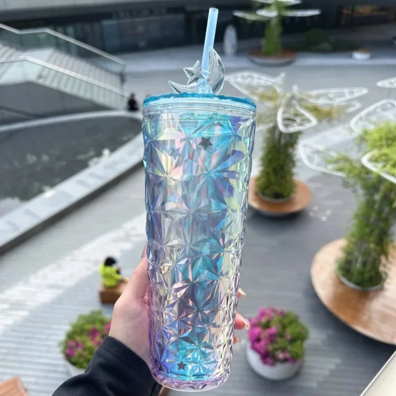 Новая большая емкость, алмазная сияющая богиня, дуриановая чашка, чашка из рыбьей чешуи, двухслойная многоразовая чашка с соломенной кружкой
