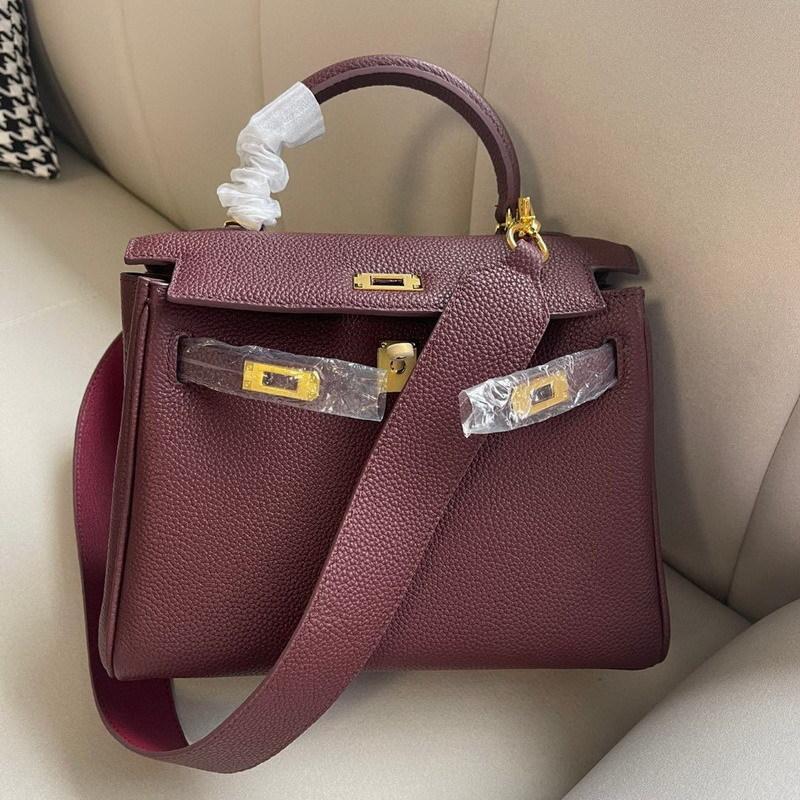 Новая верхняя часть из натуральной воловьей кожи Togo, сумка с широким плечевым ремнем, диагональная женская сумка на одно плечо 28x12x21cm вино красного