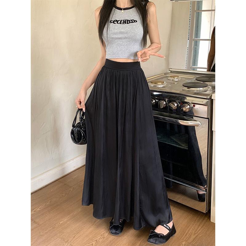 Новая весенне-летняя драпированная юбка с завышенной талией, облегающая, длинная, женская, с большим подолом, повседневная, универсальная, тонкая, простая, женская XL чёрный