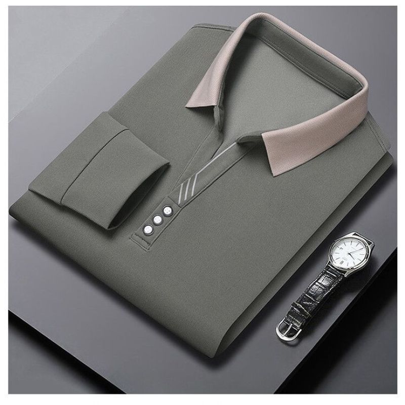 Новая весенне-летняя повседневная деловая простая однотонная свободная рубашка поло оверсайз с воротником поло и длинными рукавами для мужчин 4XL зелёный
