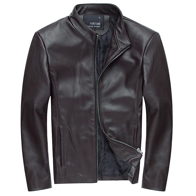 Новая весенне-осенняя мотоциклетная куртка из натуральной кожи, мужская молодежная приталенная куртка из натуральной кожи с воротником-стойкой XXXXL чёрный