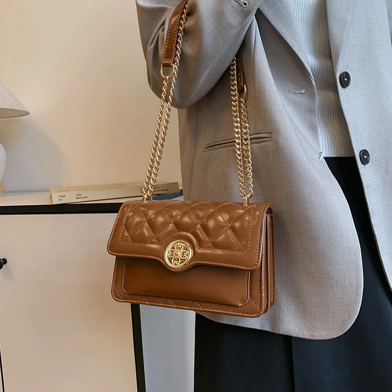 Новая высококачественная легкая роскошная маленькая квадратная сумка - глянцевая вышивка нитью, модная цепочка на плечо/через плечо (компьютер)