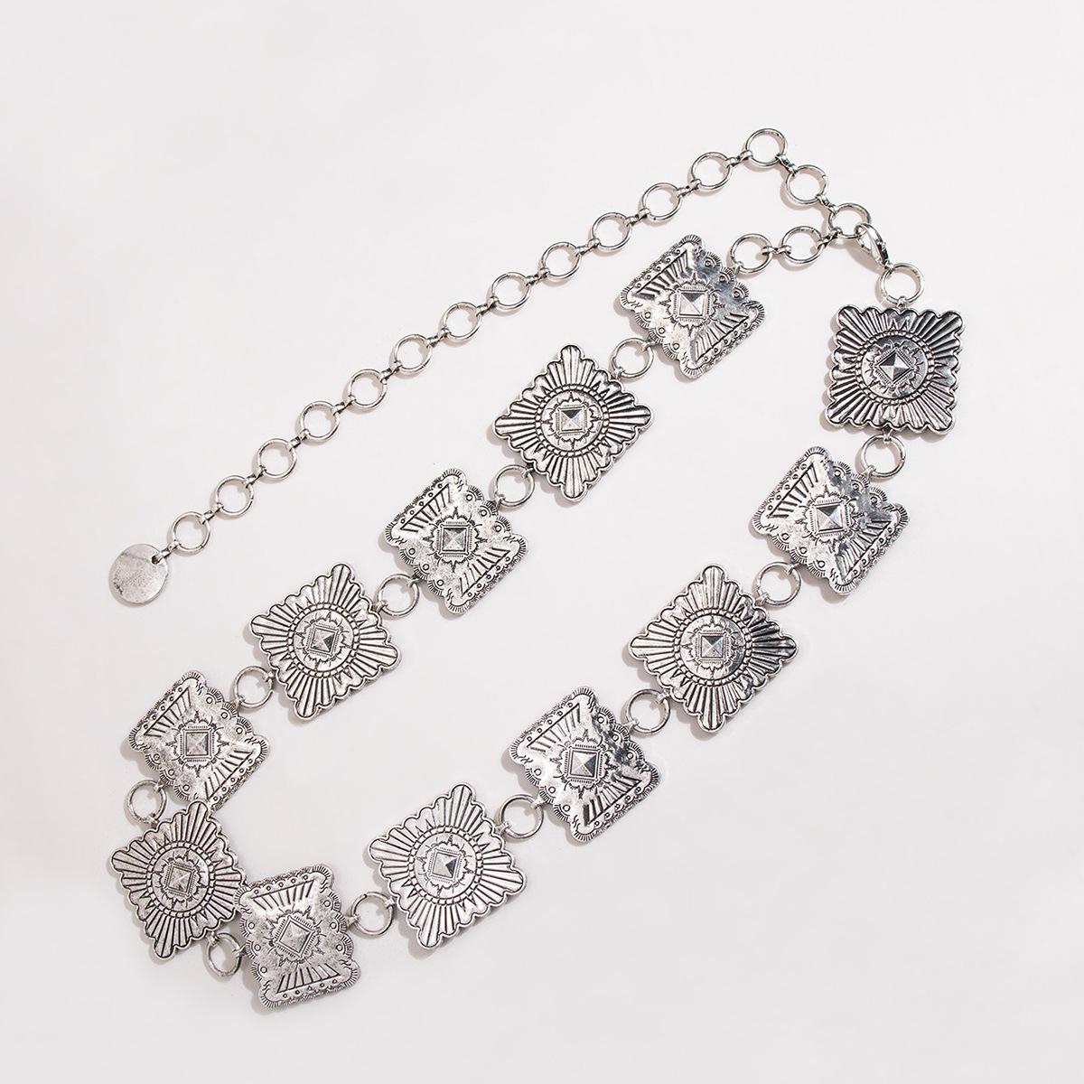 Новая гравировка в западном стиле Геометрическая женская металлическая поясная цепочка Тяжелая промышленность Мода Сельский стиль Квадратная поясная цепочка