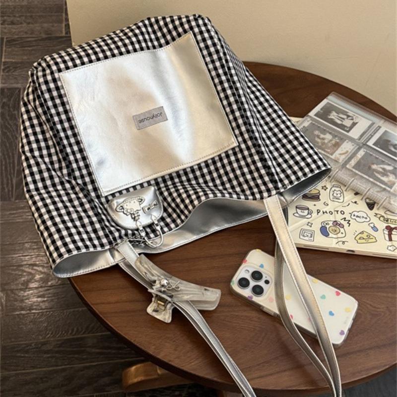 Новая двусторонняя сумка женская универсальная клетчатая сумка через плечо большой вместимости простая однотонная сумка-тоут сумка для通勤