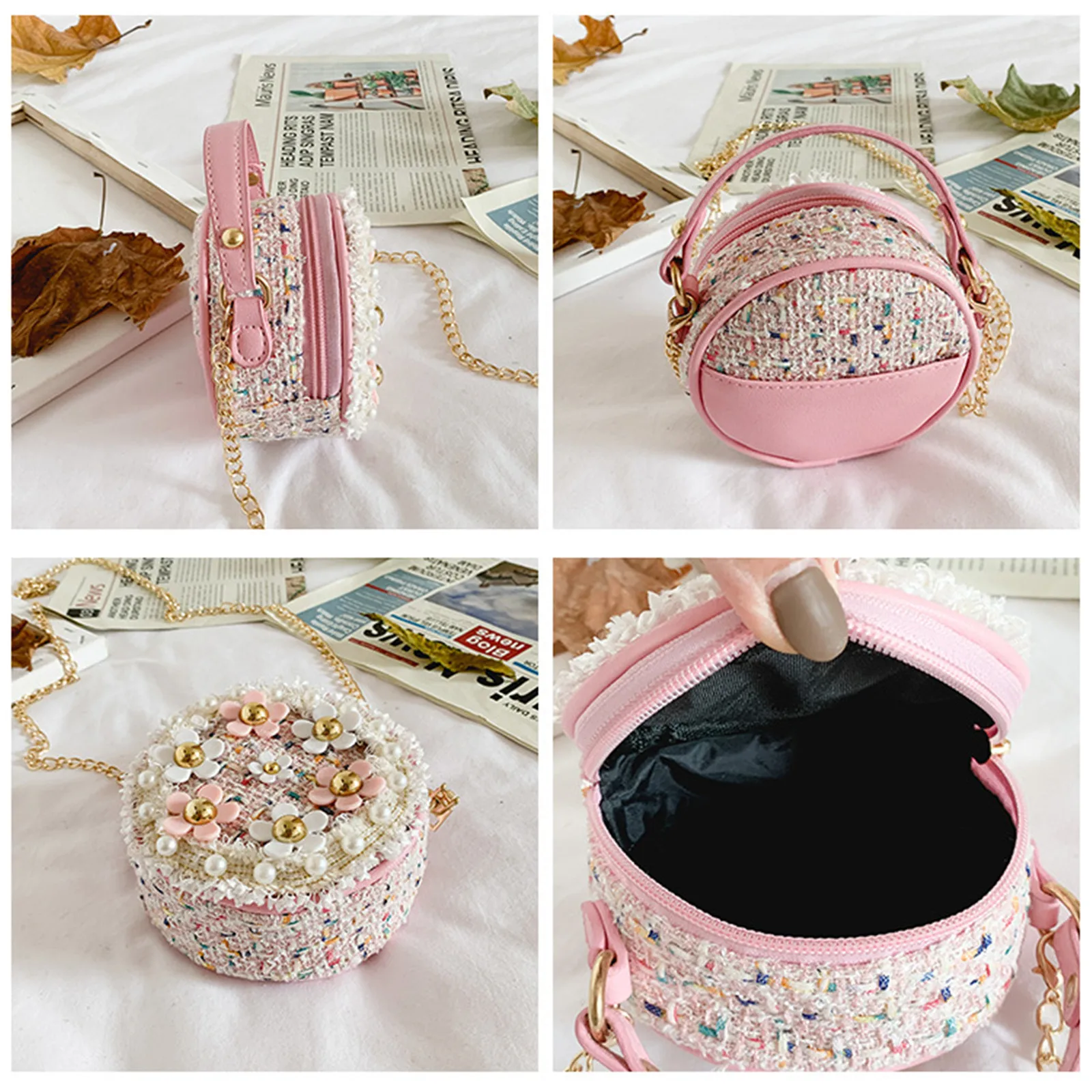 Новая детская Декоративная Сумка с милыми цветами, маленькая круглая сумка с цветами из шерсти, сумка через плечо с цепочкой, Милая Мини-сумочка