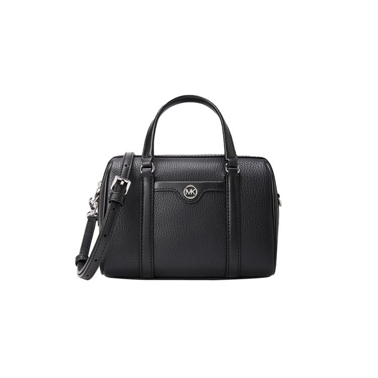 Новая дорожная сумка-цилиндр Boston из искусственной кожи MICHAEL KORS, сумка на одно плечо, женская, черная/молочно-белая 35S4STFC1B 20.1*10.9*14.5CM