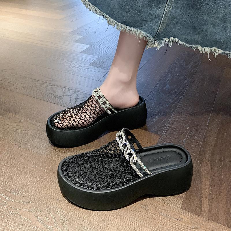 Новая дышащая сетка, ромбовидная полоска, плоская подошва, верхняя одежда, сумка, домашние тапочки, женские летние, модные, обувь-рыболовная сеть, полутапочки 40