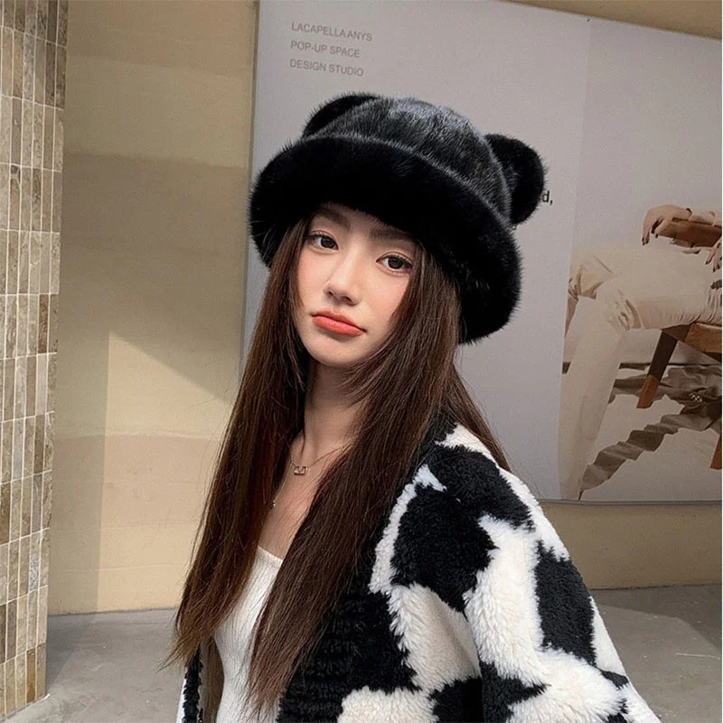 Новая женская зимняя теплая шапка из норкового меха Повседневная Корейская верхняя шапка из натурального меха утолщенная стильная уличная элегантная Рыболовная Шапка 2023