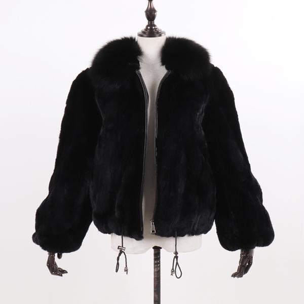 Новая женская зимняя толстая натуральная шуба из натурального меха кролика рекс, женская теплая качественная куртка из 100% натурального меха кролика рекс с воротником из лисьего меха M чёрный