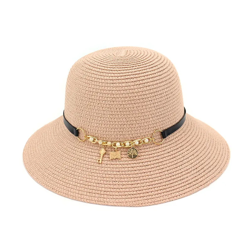 Новая женская летняя пляжная шляпа от солнца, Женская Складная соломенная шляпа с широкими полями, аксессуары на цепочке, Женская Солнцезащ...