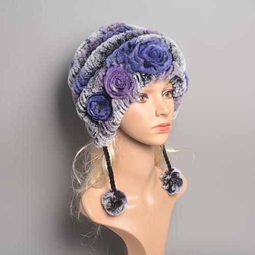 Новая женская меховая шапка из кролика рекс с розовым узором, комок шерсти, проволочная ткань, подкладка, несколько вариантов цвета, зимняя теплая фиолетовый/светло-синий