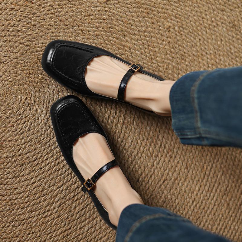Новая женская модная одинарная обувь на одном педале, черная низкая обувь, повседневная обувь на низком каблуке, однотонная, для ношения в любое время года, балетки на квадратном каблуке 39 чёрный