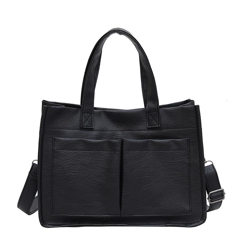Новая женская однотонная повседневная ретро-портативная сумка через плечо, вместительная многослойная женская сумка-мессенджер чёрный