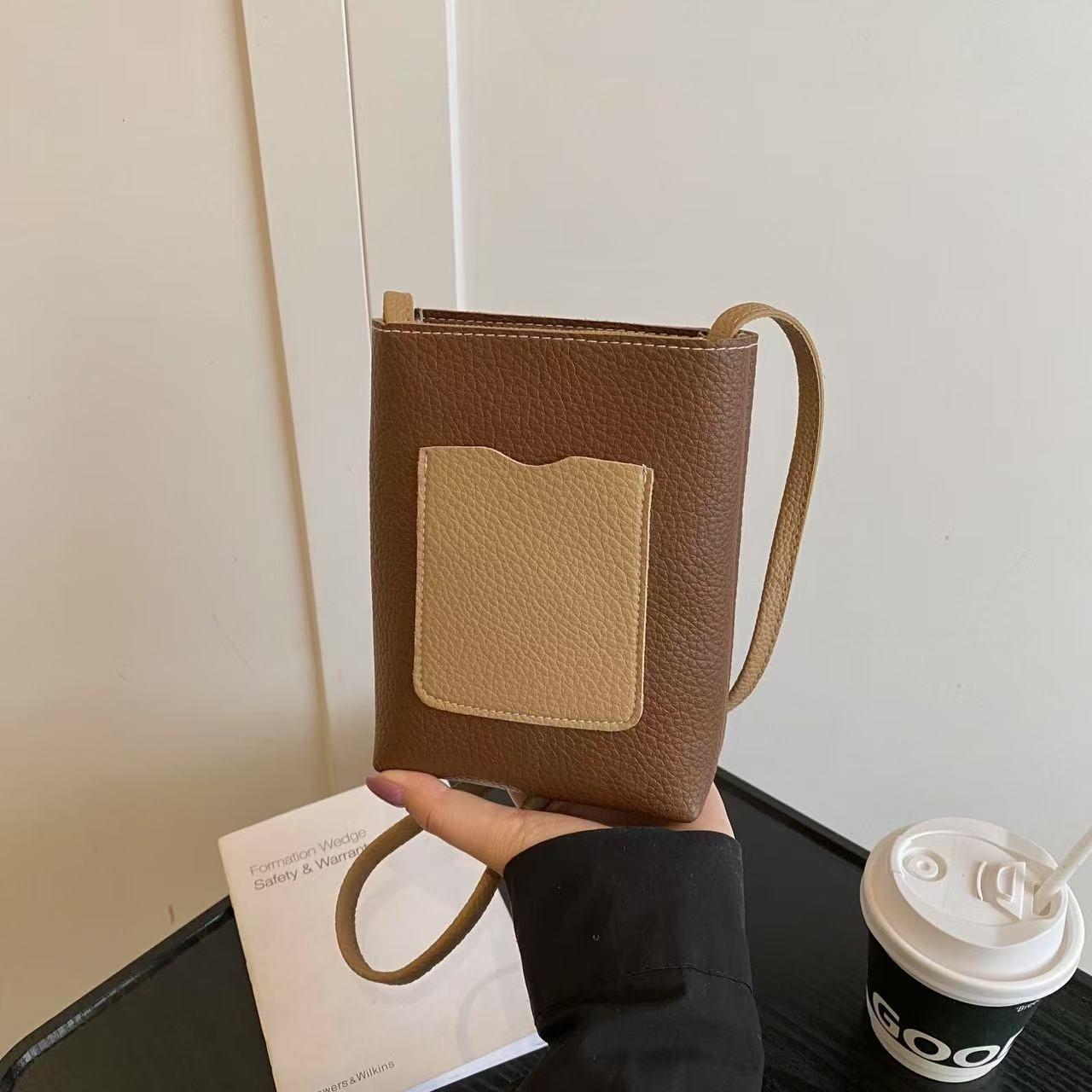 Новая женская повседневная портативная сумка-ведро для мобильного телефона - контрастная цветная сумка-сэтчел через плечо, модная и простая коричневый