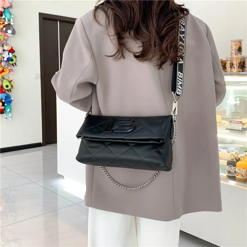 Новая женская сумка через плечо из искусственной кожи, большая вместительная квадратная сумка в стиле ретро, корейская версия, простая сумка через плечо с цепочкой под мышками