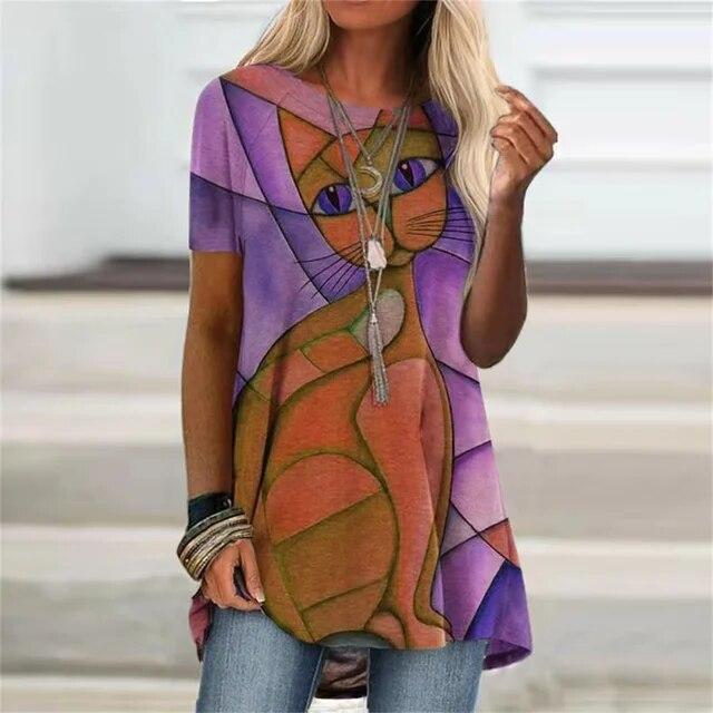 Новая женская футболка с 3D принтом, одежда для девочек с котами, летняя блузка большого размера с короткими рукавами, женская винтажная уличная одежда, 2023, повседневные топы XXL