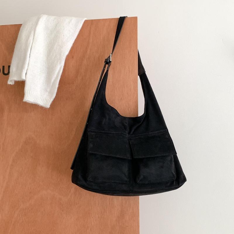 Новая замшевая сумка в ретро-стиле женская сумка через плечо большой вместимости осенне-зимняя замшевая сумка-тоут для通勤 женская чёрный