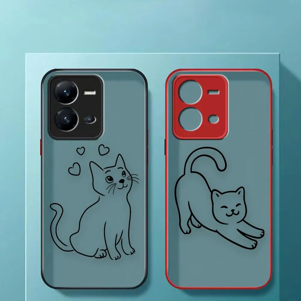 Matte Case Funda Coque For VIVO S1 S5 S6 S9 E PRO V5 V11I V15 V17 V19 V20 V21 V21E V23 V23E V25 SE PRO 5G Case Cute Line Cat Art