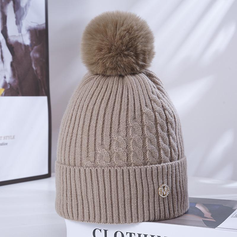 Новая зимняя вязаная шапка Twist для женщин с меховым помпоном, толстая плюшевая шапка, однотонная женская теплая лыжная шапка для снега One Size хаки