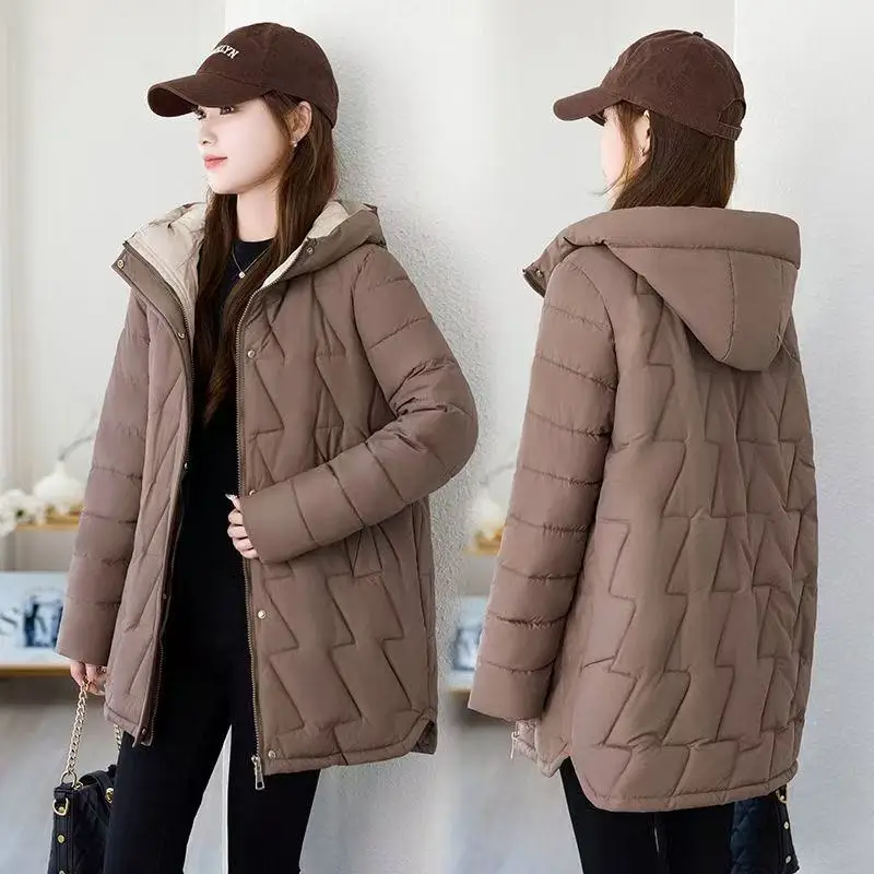 Новая зимняя куртка, женская парка с капюшоном, теплая хлопковая стеганая куртка, парка, свободное зимнее длинное пальто средней длины, женская верхняя одежда, пальто