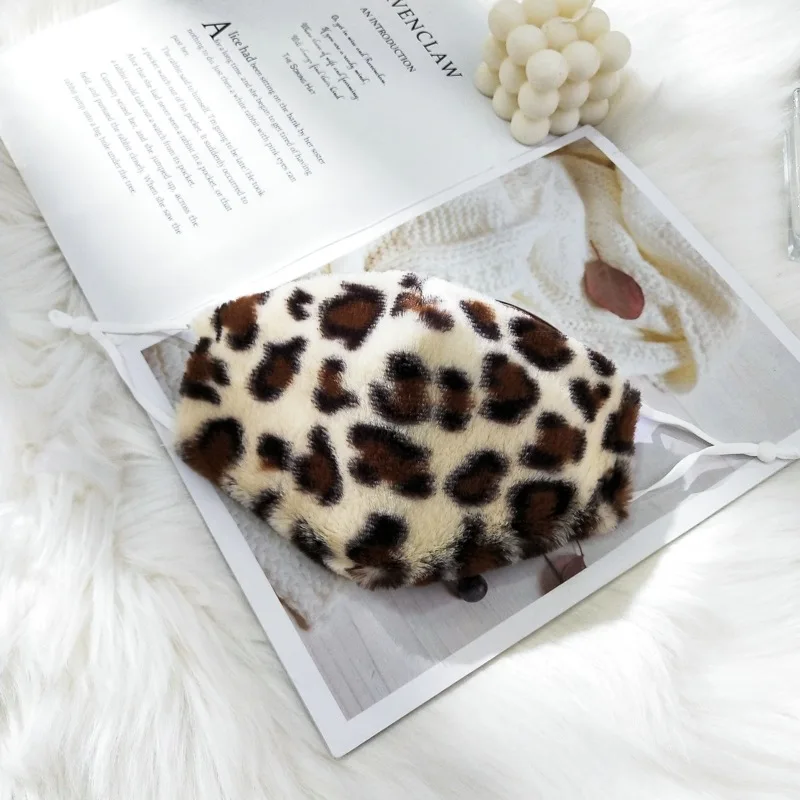 Новая зимняя маска женская модная плюшевая маска с леопардовым принтом моющаяся, теплая и удобная, Пыленепроницаемая осенне-зимняя разноцветная