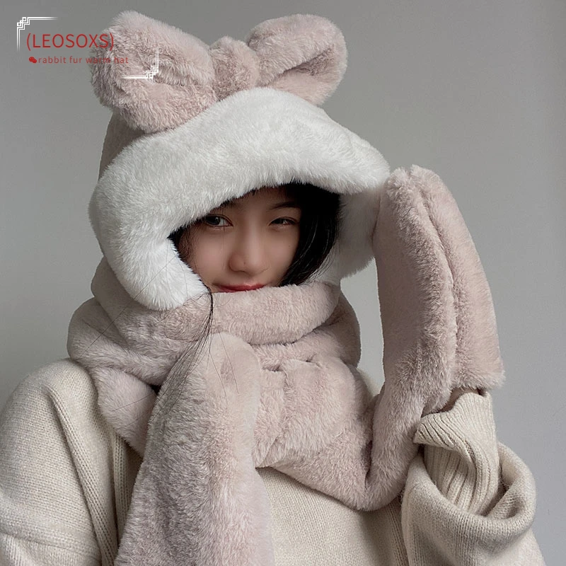 Новая зимняя модная очень плотная простая Милая шапка шарф перчатки три в одном шапка Lei Feng теплая шапка с защитой от холода из искусственно...