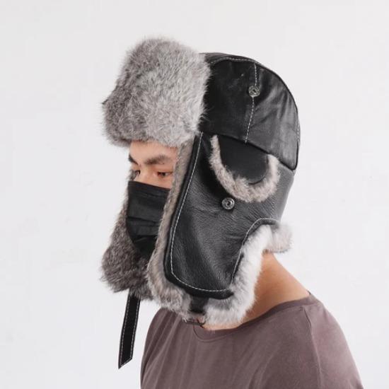 Новая зимняя мужская шапка-бомбер из натурального кроличьего меха, кепка из натуральной овчины, мужская уличная ветрозащитная супертеплая шапка из кроличьего меха 61cm-62cm