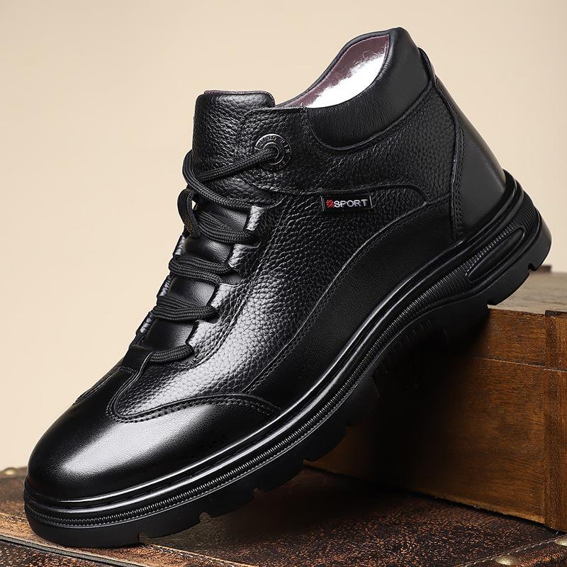 Новая зимняя обувь для мужчин, шерстяные ботинки, натуральная кожа, теплая плюшевая повседневная обувь, нескользящие зимние ботинки 41 чёрный