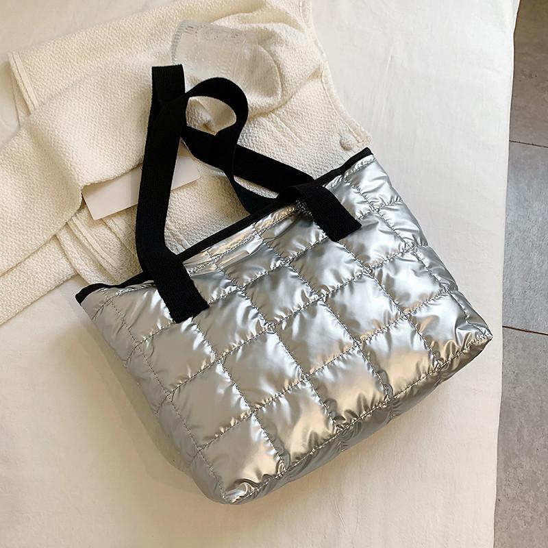 Новая зимняя сумка-тоут для женщин, космическая хлопковая сумка, большая вместительная сумка на плечо, модная тканевая сумка, дорожная большая пуховая сумка 37*11*31cm серебряный