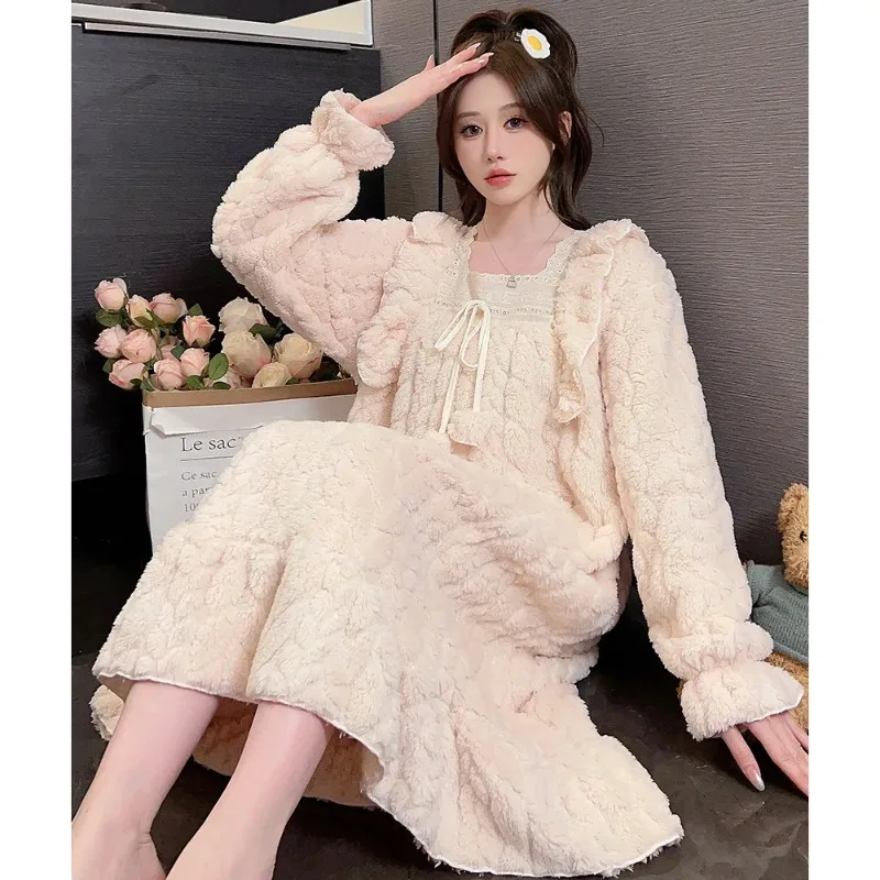 Новая зимняя толстая теплая ночная рубашка, женская фланелевая одежда для сна, милая бархатная пижама кораллового цвета для девочек, женская повседневная ночная рубашка, домашняя одежда
