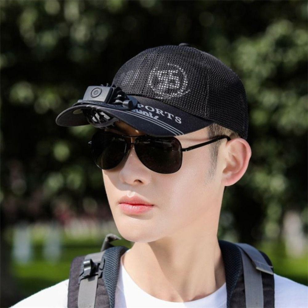 Новая кепка вентилятора, регулируемая бейсболка для взрослых с зарядкой через USB, мужская рыболовная кепка, солнцезащитная кепка с защитой от ультрафиолета, летняя кепка для защиты от солнца на открытом воздухе чёрный