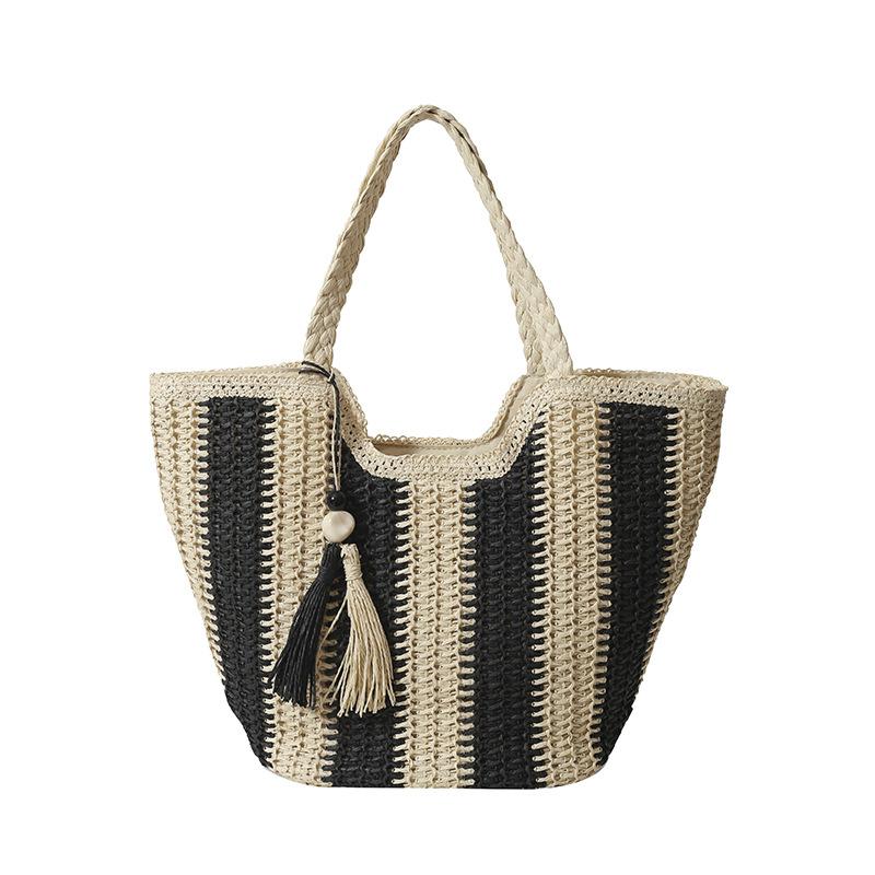 Новая китайская соломенная сумка женская популярная студенческая приморский отпуск портативная сумка через плечо универсальная пляжная сумка чёрный
