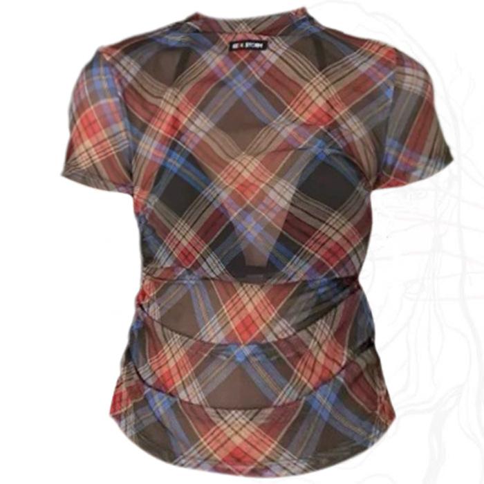 Новая клетчатая футболка с короткими рукавами для женщин на лето Милая и классная облегающая и стройнящая уличная футболка XL