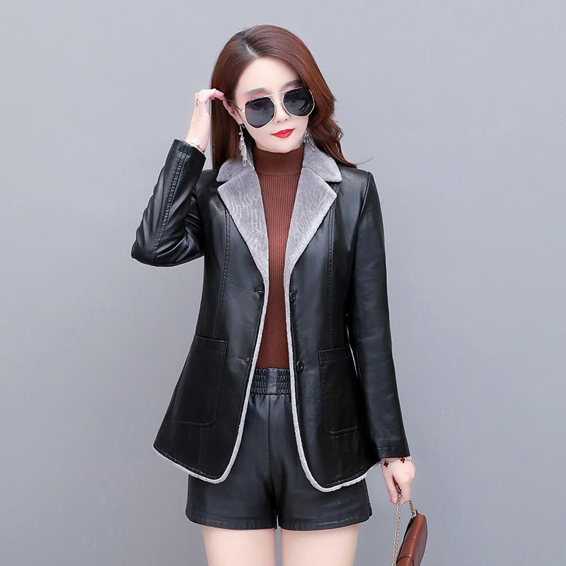 Новая корейская версия женской шубы, цельное пальто из утолщенного меха, женский кожаный костюм, кожаная куртка, большой размер