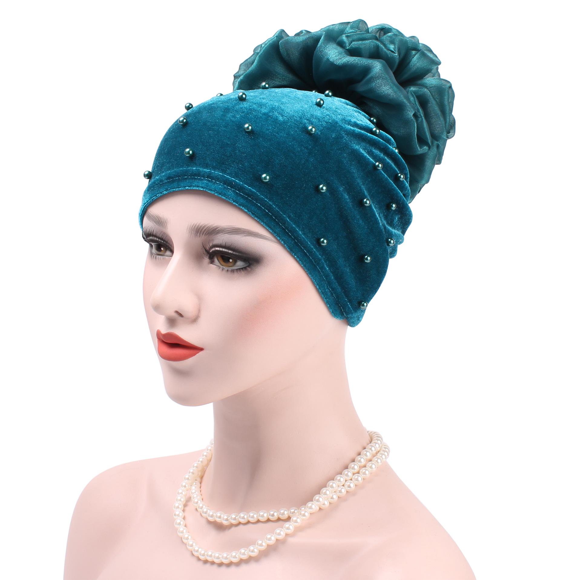 Новая корейская шапка-бини из бархата с жемчужными заклепками и цветочным платком Adjustable