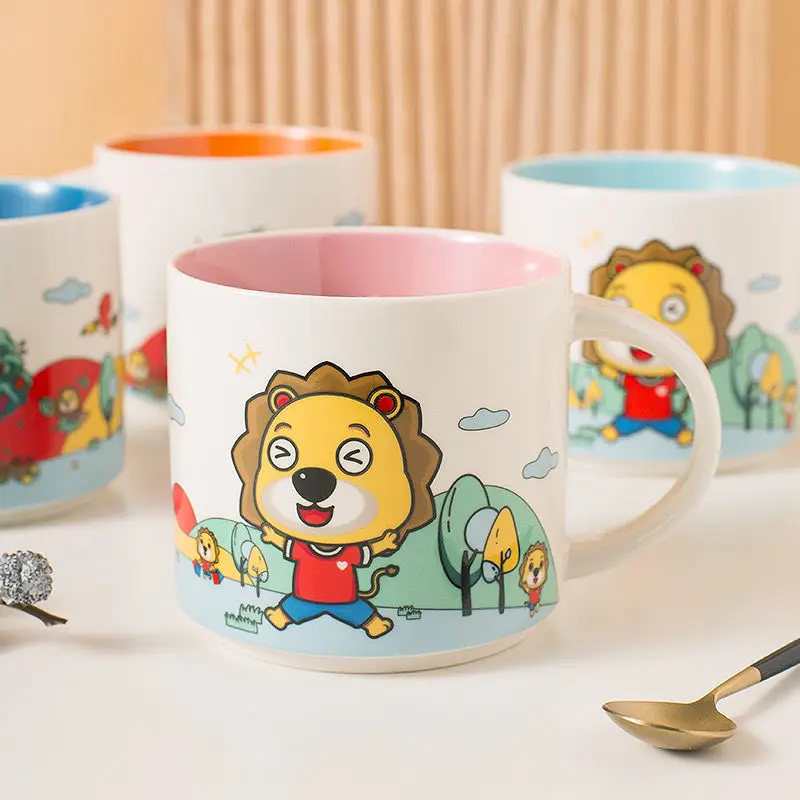 Новая кофейная чашка 450 мл с милым мультяшным львом, Офисная семейная чайная чашка, Кофейная пара, кружка для друзей/детей, персонализирован...