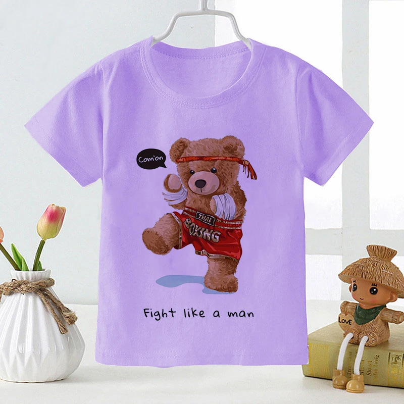 Новая летняя детская летняя футболка для мальчиков и девочек с принтом милого медведя из мультфильма, Повседневная модная детская футболка...