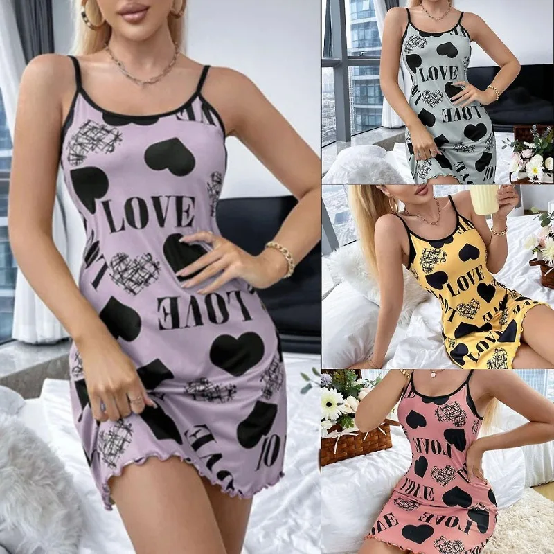 Новая летняя женская ночная рубашка с красивой спиной, тонкая секция домашней одежды, сексуальная короткая юбка с лямкой на шее, милая пижама с принтом из мультфильма