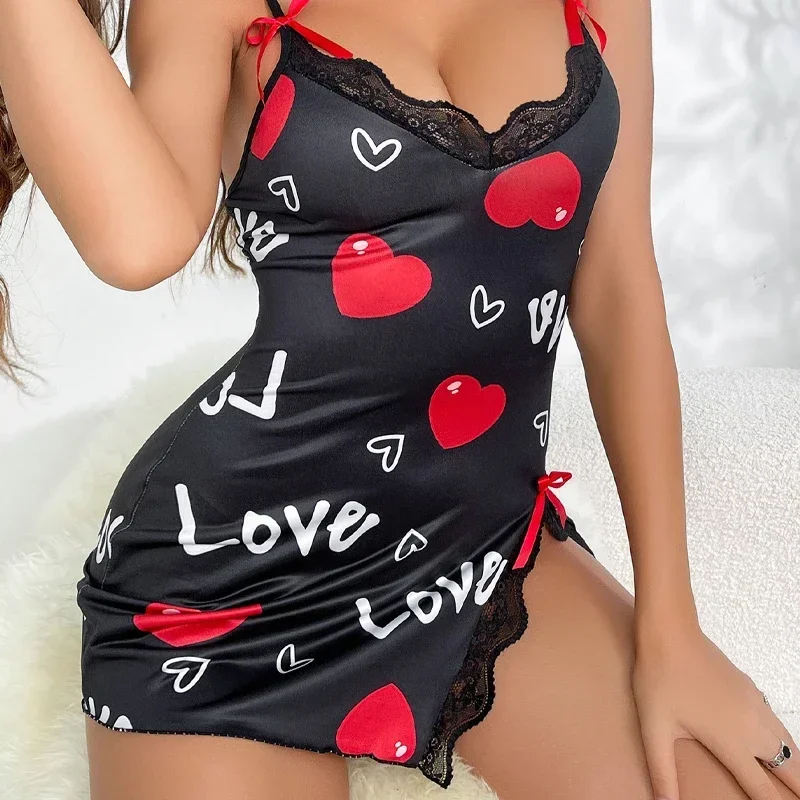 Новая летняя женская ночная рубашка с красивой спиной, тонкая секция домашней одежды, сексуальная короткая юбка с лямкой на шее, милая пижама с принтом из мультфильма
